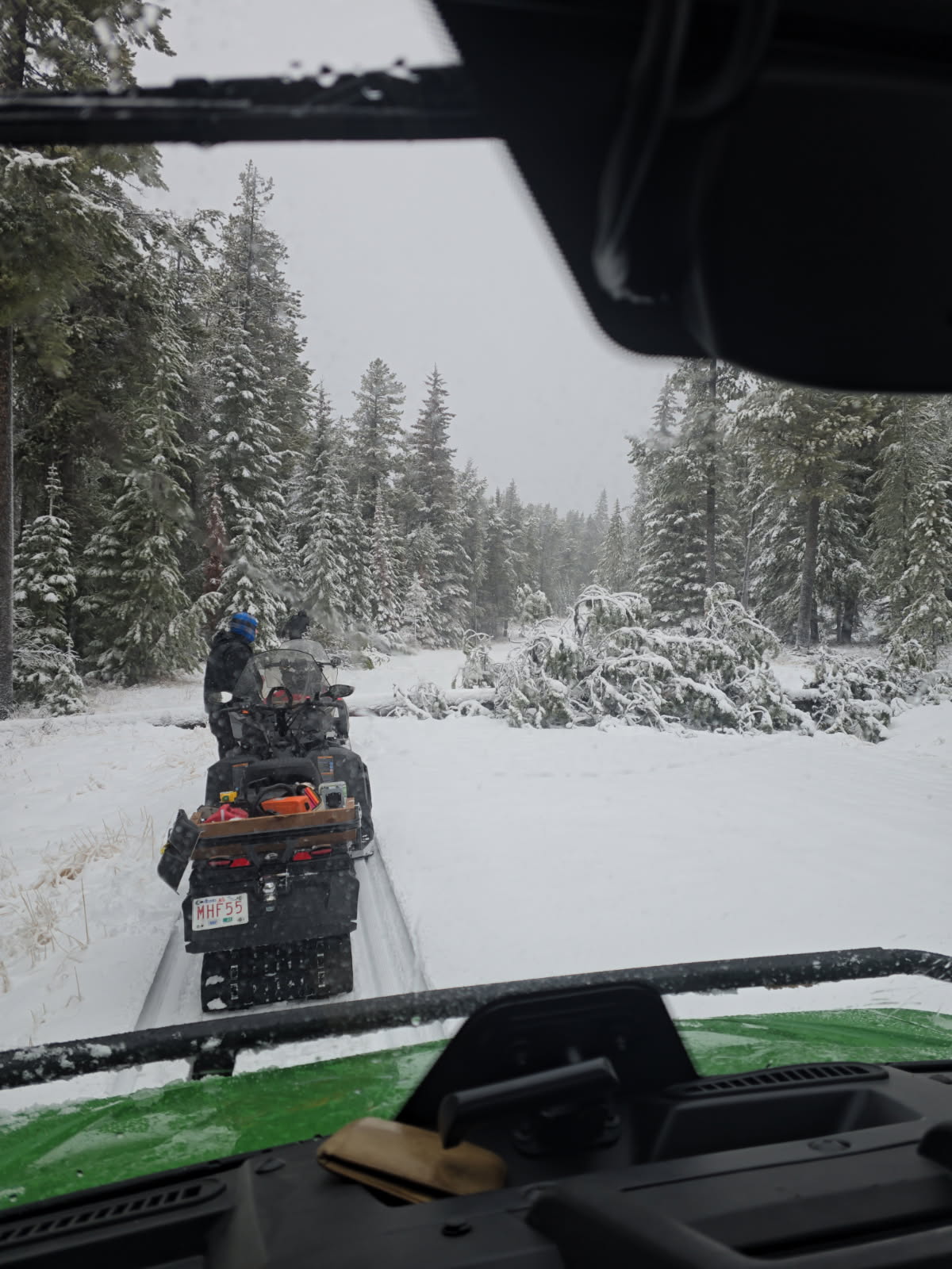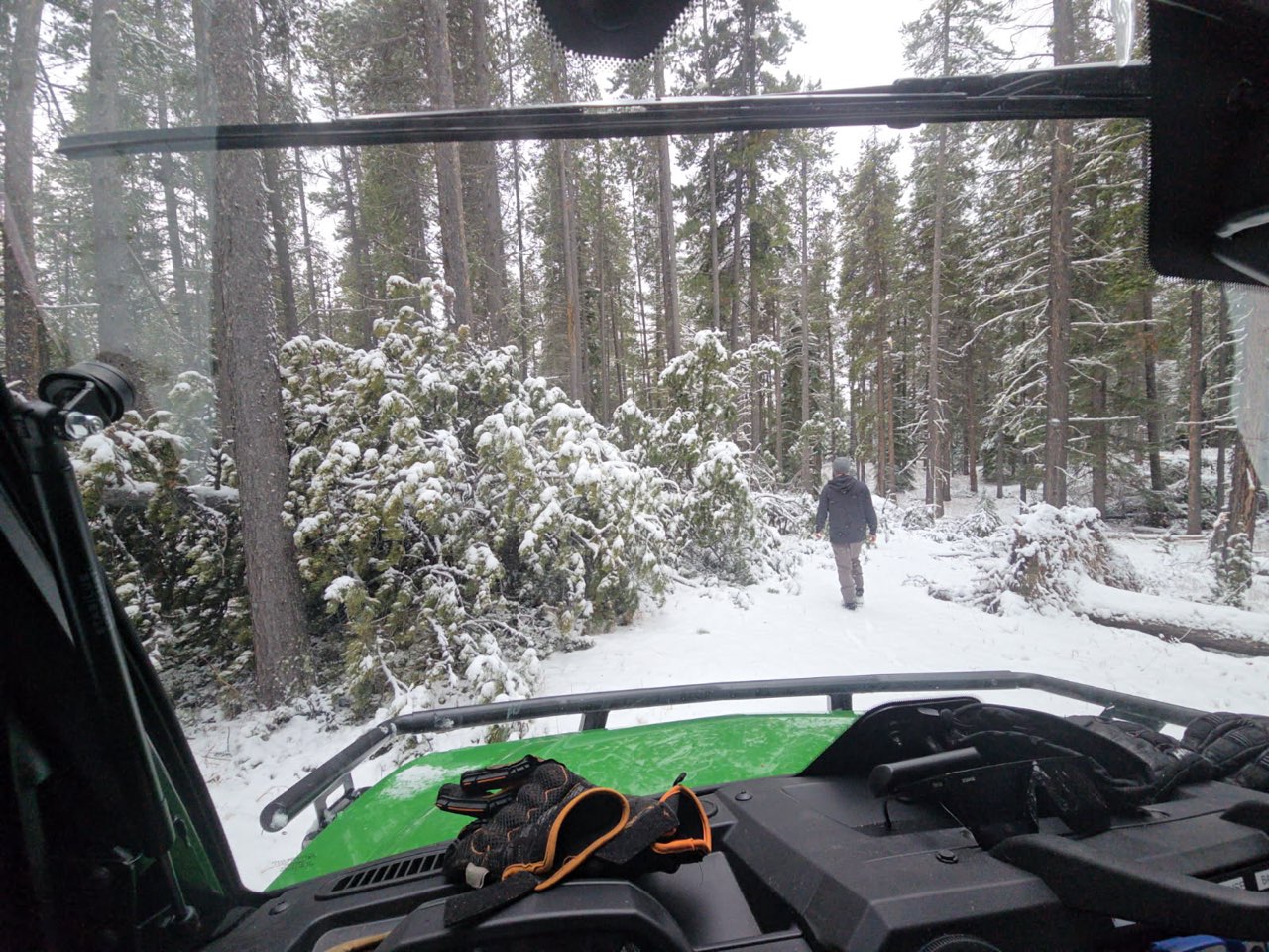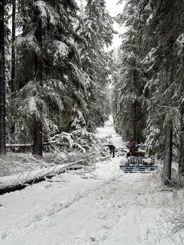 Crews spent all day yesterday and today clearing trees from trails. We will likely finish up today and begin grooming tomorrow. We are hoping for decent conditions for the weekend.